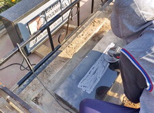 Изготовленную стелу готовим к пескострую. Закрываем плёнкой части, которые должны остаться полированными. Прочую площадь делаем матовой.